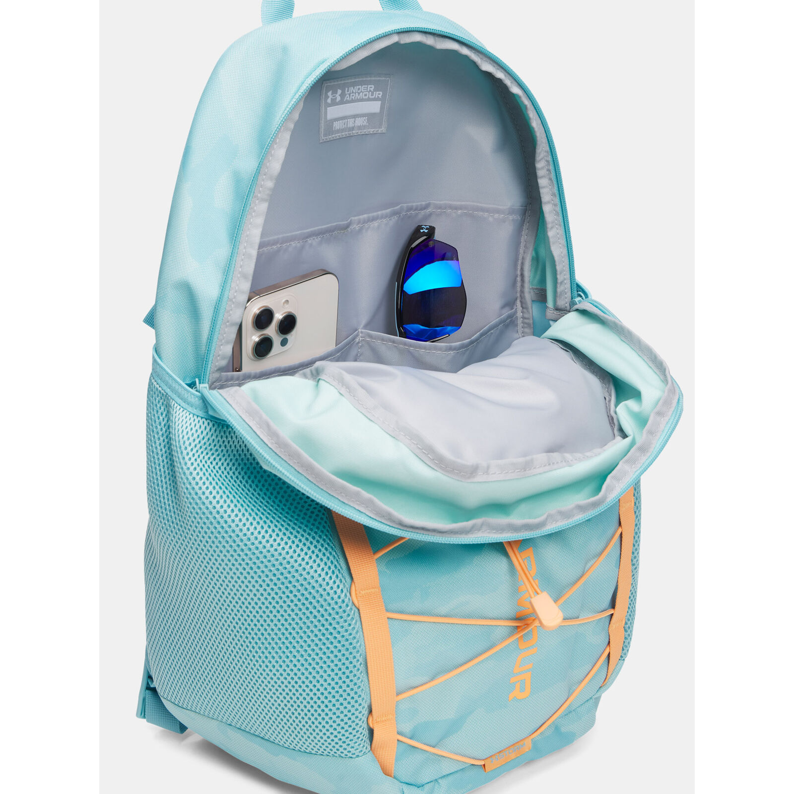 A UA Storm vízlepergetõ technológia szárazon tartja a holmidat.A párnázott hátpanel és a formázott pántok kényelmesebbé teszik a viselést.Puha bélés laptoptartó és szervezõ panel - akár 16"-os laptopot vagy hasonló méret eszközt is képes tárolni.Elülsõ rész gumis rögzítéssel a kabát, cipõ vagy labda egyszer tárolásához.Nagy elülsõ zseb cipzárral.Tartós alj kopásálló felülettel.A 2 oldalsó vizespalack tartó zseb akár 950 ml-es palackot is képes tárolni.Felsõ fogantyú.