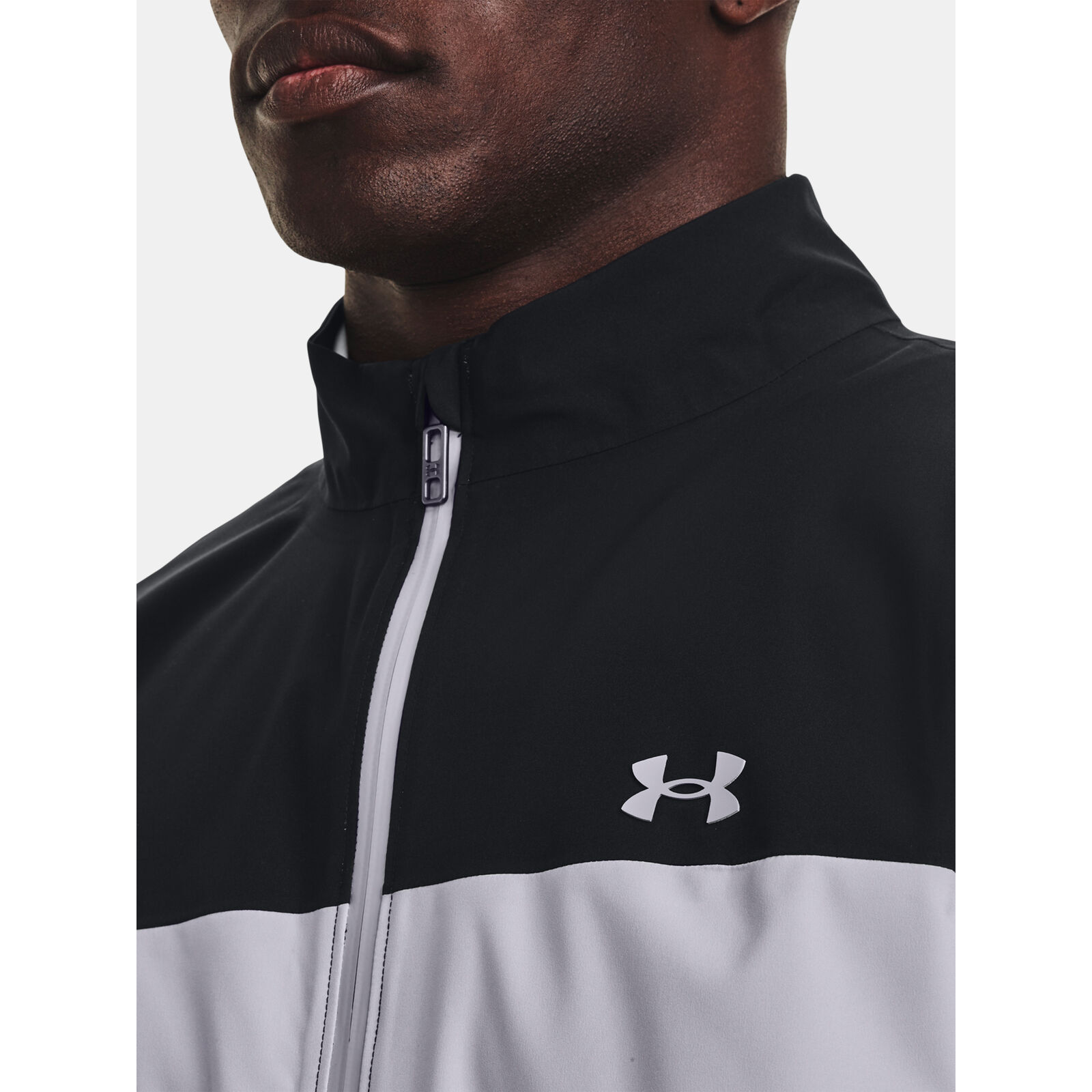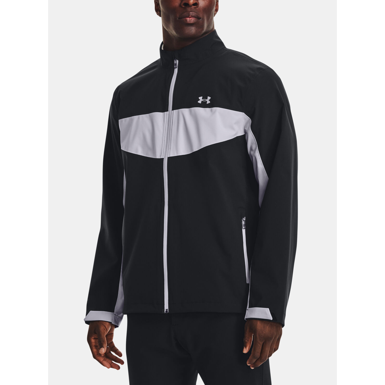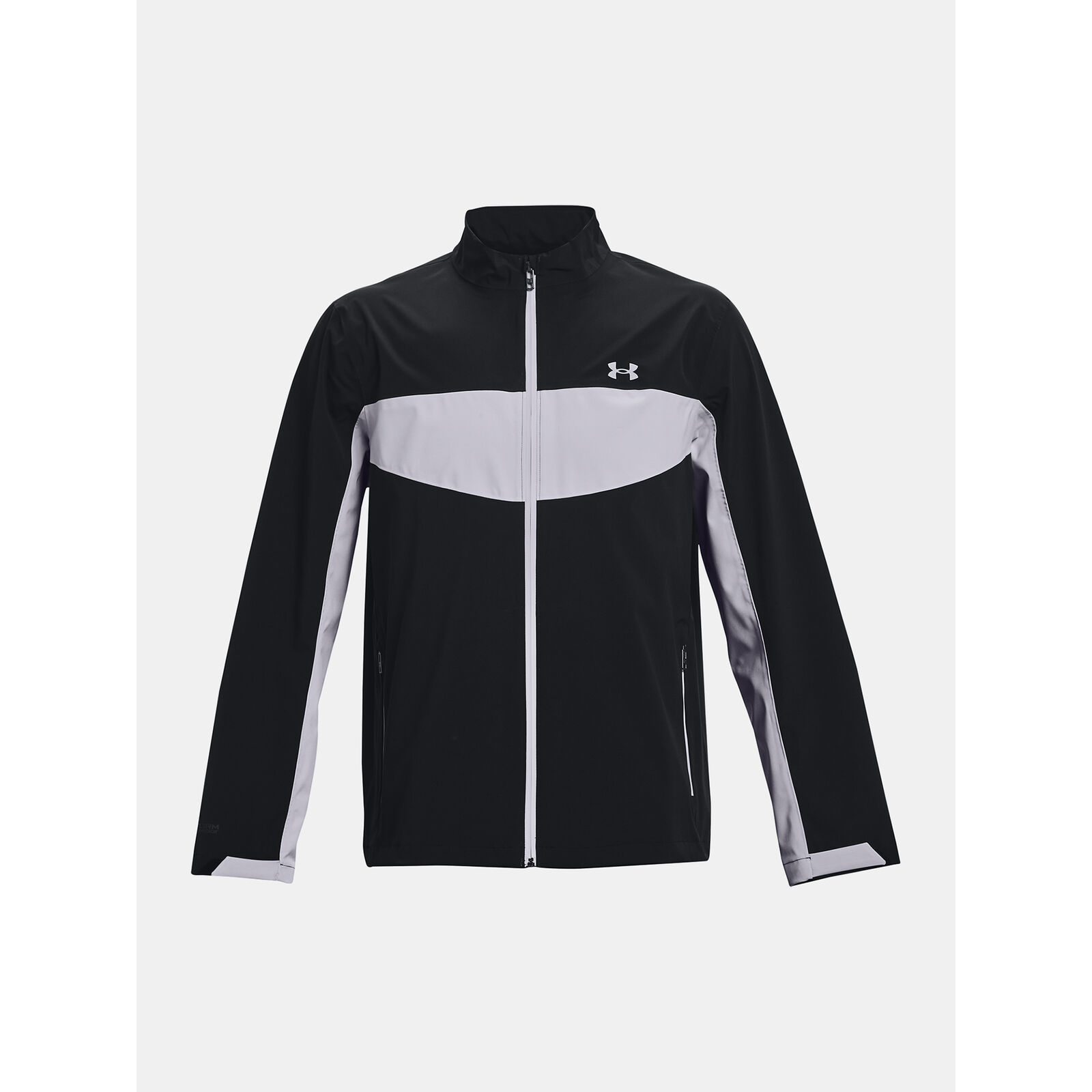 Az UA Storm technológia taszítja a vizet a légáteresztõ képesség csökkentése nélkül.100%-ban vízálló és légáteresztõ 2,5 réteg ragasztott szövet teljesen ragasztott varratokkal.Biztonságos, cipzáras zsebek a kézen.Állítható mandzsetták és alsó szegély a biztonságos illeszkedésért.