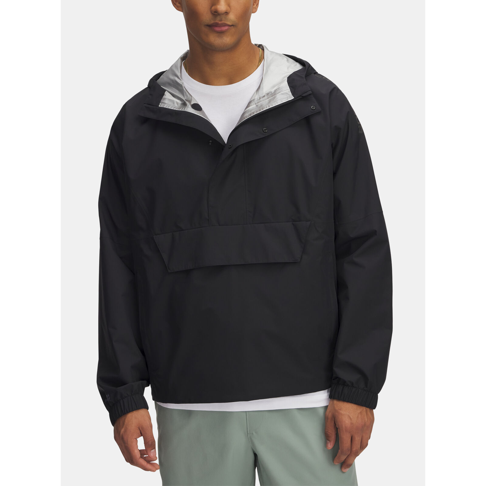 Az UA Storm technológia taszítja a vizet anélkül, hogy csökkentené a légáteresztést.Légáteresztõ kétréteg szövet teljesen ragasztott varratokkal.A ½ cipzár könny rétegezést tesz lehetõvé a Storm hajtókának köszönhetõen.Bungee beállítás a kapucni hátulján.Cipzáras zsebek és elülsõ zseb patentos hajtókával.Teljesen elcsomagolható az elülsõ zsebbe.Rugalmas mandzsetták.Fluortól mentes vízlepergetõ kezelés.