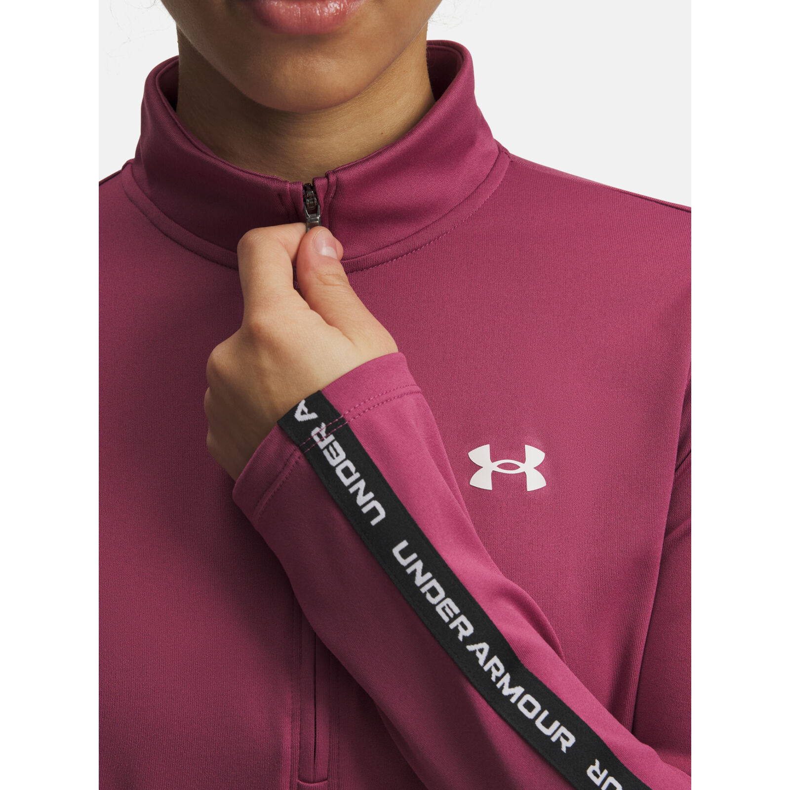 Az UA Tech anyag gyorsan száradó és nagyon puha.Az anyag elvezeti az izzadságot és nagyon gyorsan szárad.Praktikus elülsõ ½ cipzár a könny rétegezéshez.
