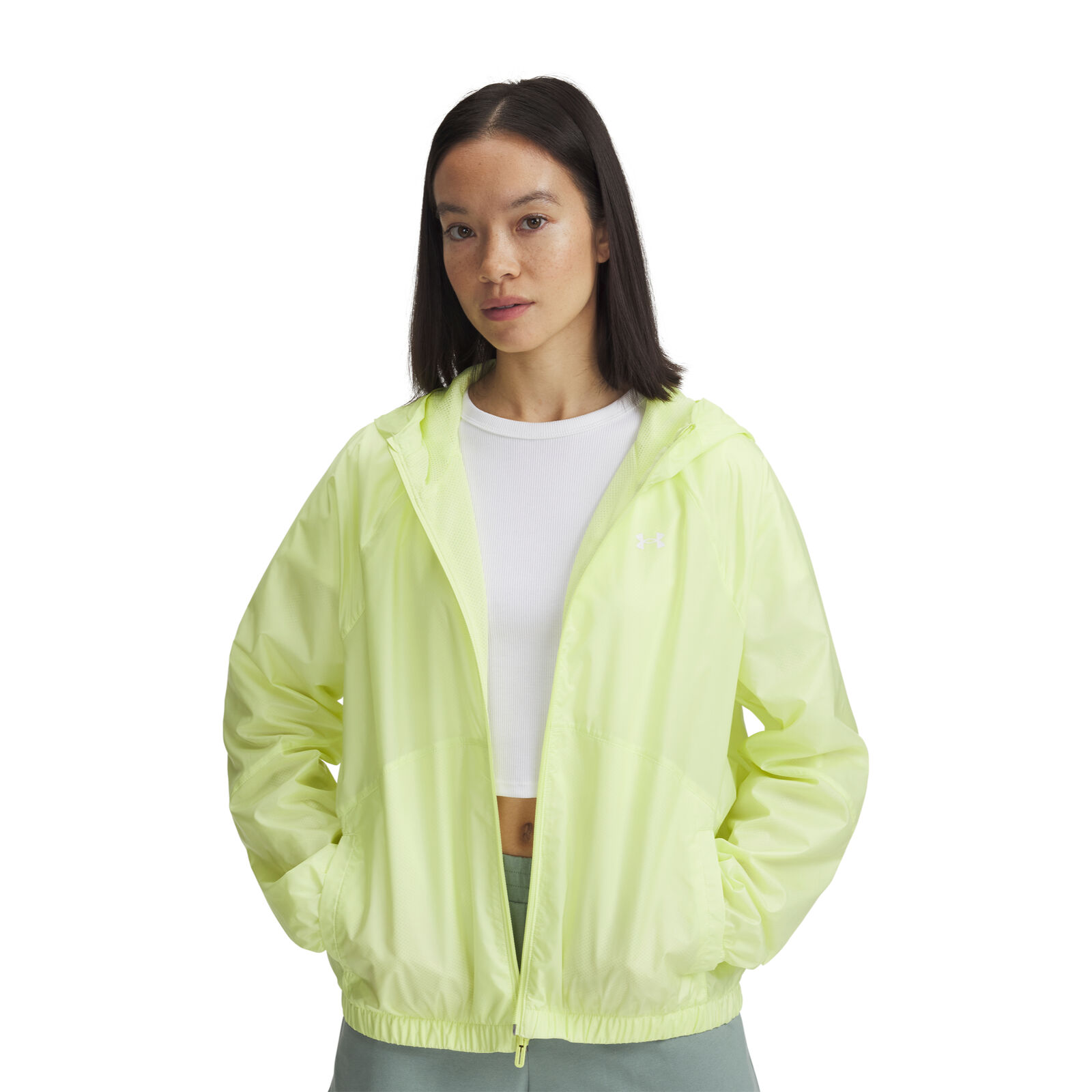 Az UA Storm technológia taszítja a vizet a légáteresztés csökkentése nélkül.A szélálló anyagok és konstrukciók megvédenek a rossz idõjárástól.A sima ripstop szövet könny és nagyon tartós.Hálós bélés a jobb légáteresztés érdekében.Nyitott kézzsebek.Az alsó szegély gumiszalaggal állítható, a rugalmas mandzsetták pedig biztonságos illeszkedést biztosítanak.A fõ szövet legalább 90%-ban újrahasznosított poliésztert tartalmaz, a szegélyek és a részletek kivételével.Fluormentes vízlepergetõ kezelést használ.Raglán ujjak.