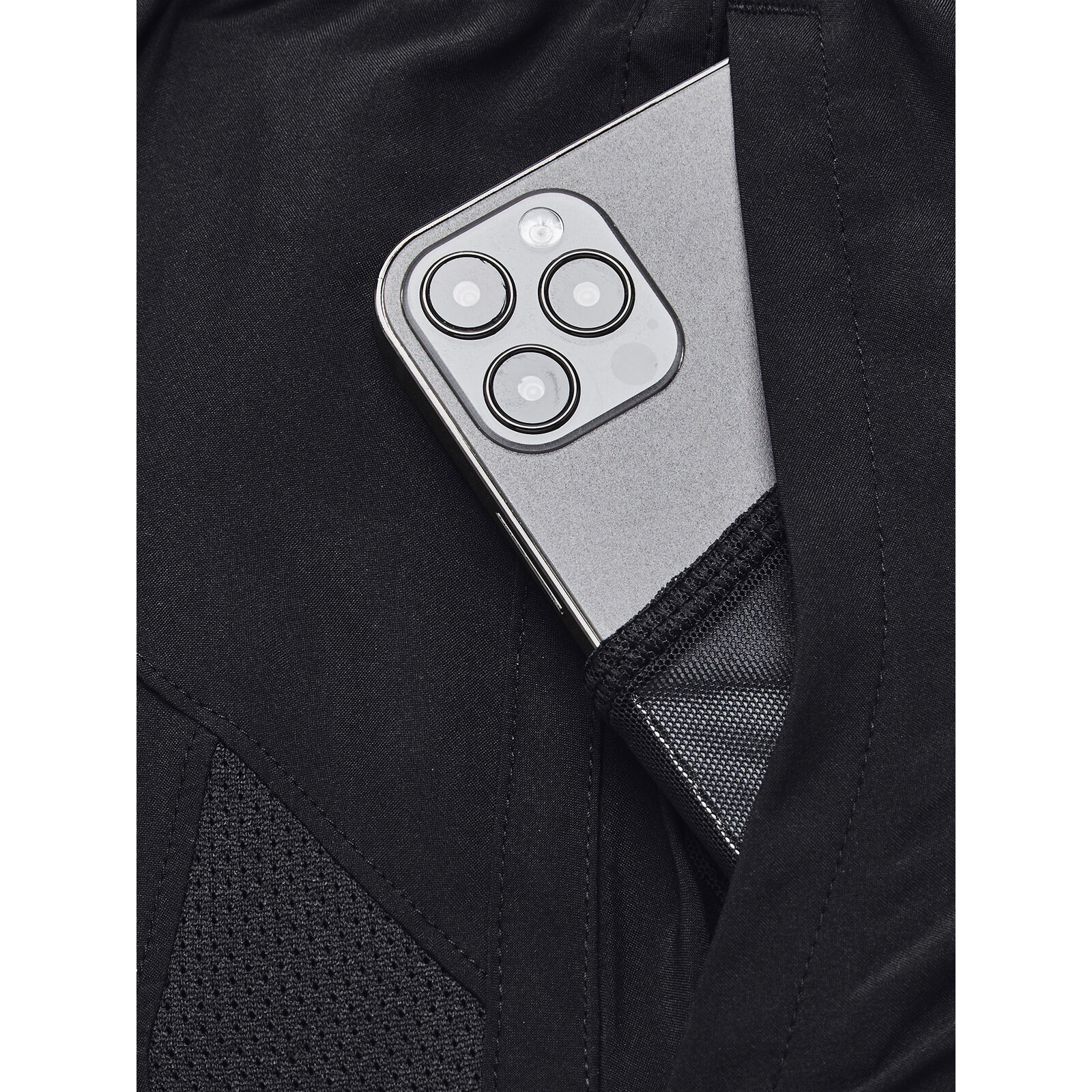 A szövet könny, kényelmes és tartós.Az anyag elvezeti az izzadságot és nagyon gyorsan szárad.A szuperlélegzõ hálós panelek jobb szellõzést biztosítanak.Puha kötött derékrész belsõ húzózsinórral a maximális kényelem és a biztonságos illeszkedés érdekében.Nyitott zsebek a kezeknek belsõ telefontartó zsebbel a jobb oldalon.A fõ szövet legalább 90%-ban újrahasznosított poliésztert tartalmaz, a szegélyek és a részletek kivételével.Szárhossz: 18cm.
