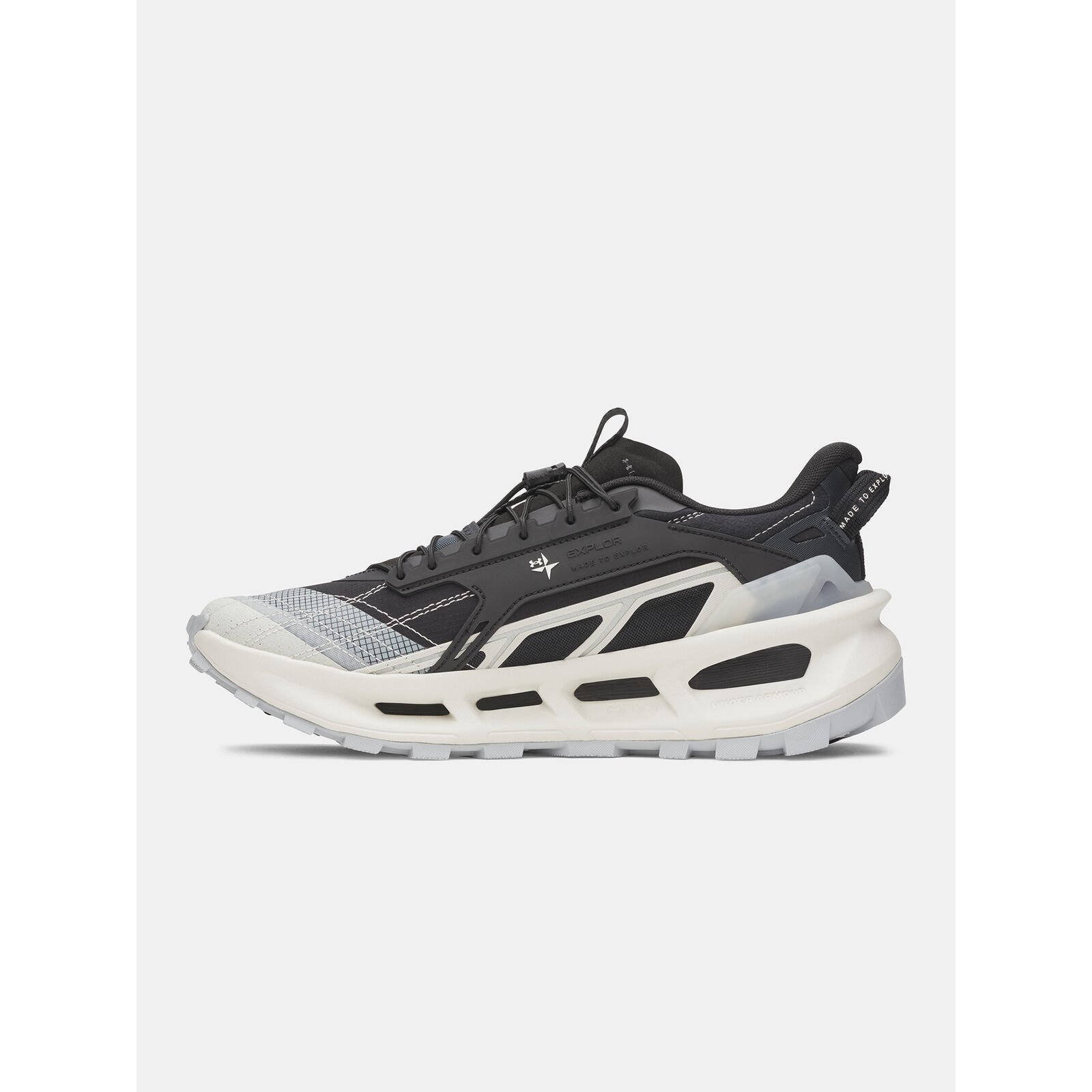 A könny és tartós ripstop felsõrész védelmet és tartást biztosít.Formázott TPU panel és gumi orr a nagyobb tartósság érdekében.A gyorsfzõ rendszer a helyén tartja a sarkat, így biztonságosabb illeszkedést biztosít futás vagy túrázás közben.Formázott EVA talpbetét a nagyobb kényelemért járás közben.Kettõs srség UA HOVR középtalp a nagyobb stabilitásért, az ütéscsökkentésért és az energia-visszaadásért.A talp mély mintázattal és Exogrip gumival rendelkezik, amely kivételes tapadást biztosít nedves és száraz felületen, bármilyen terepen.