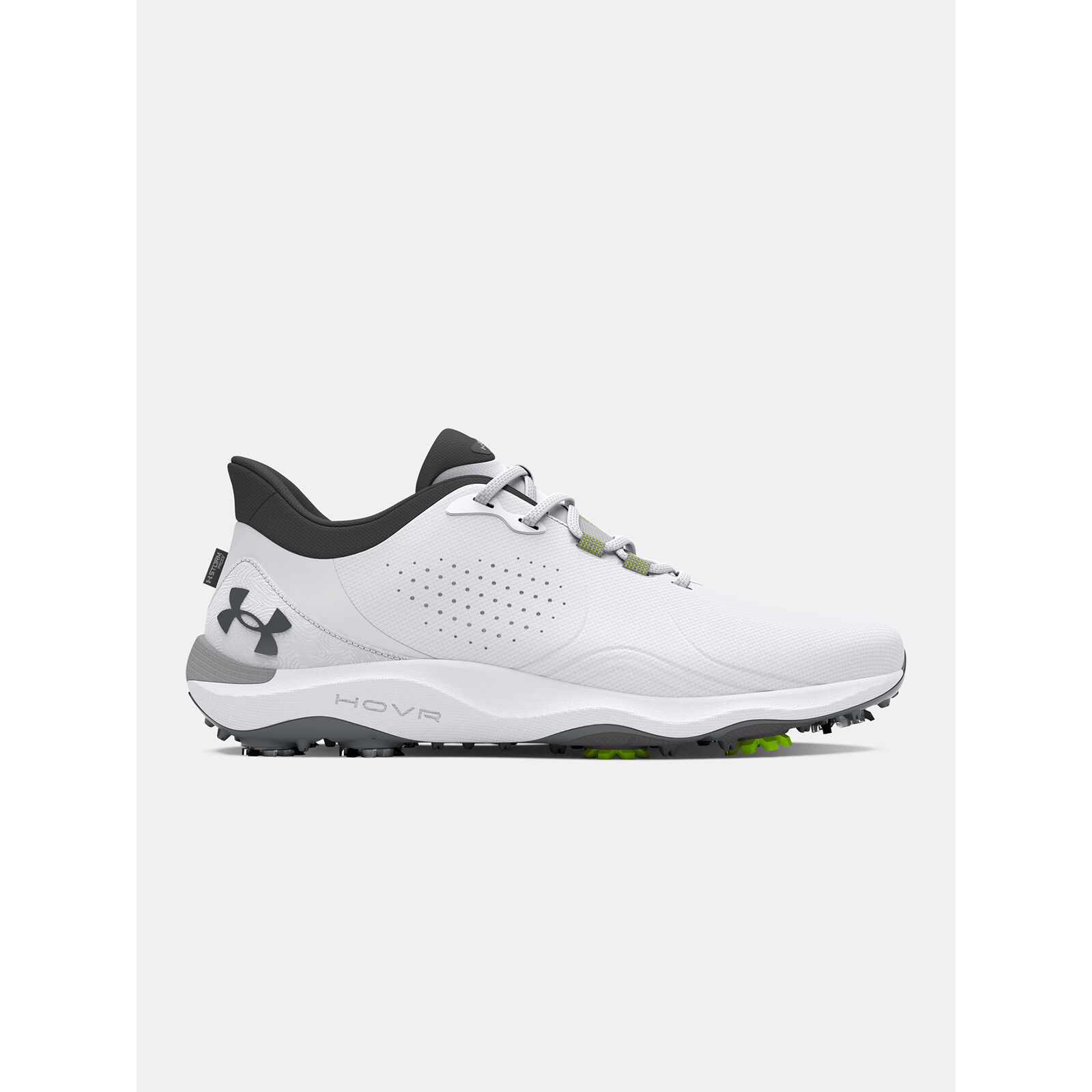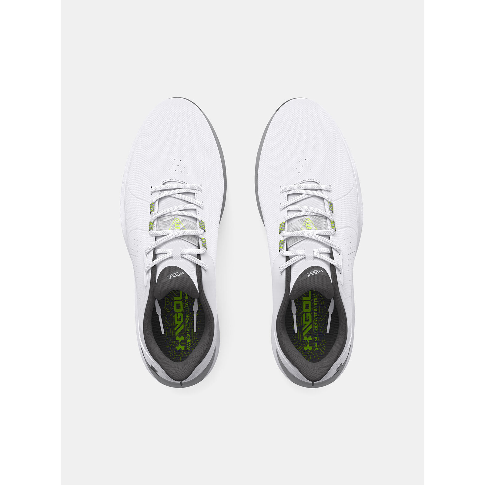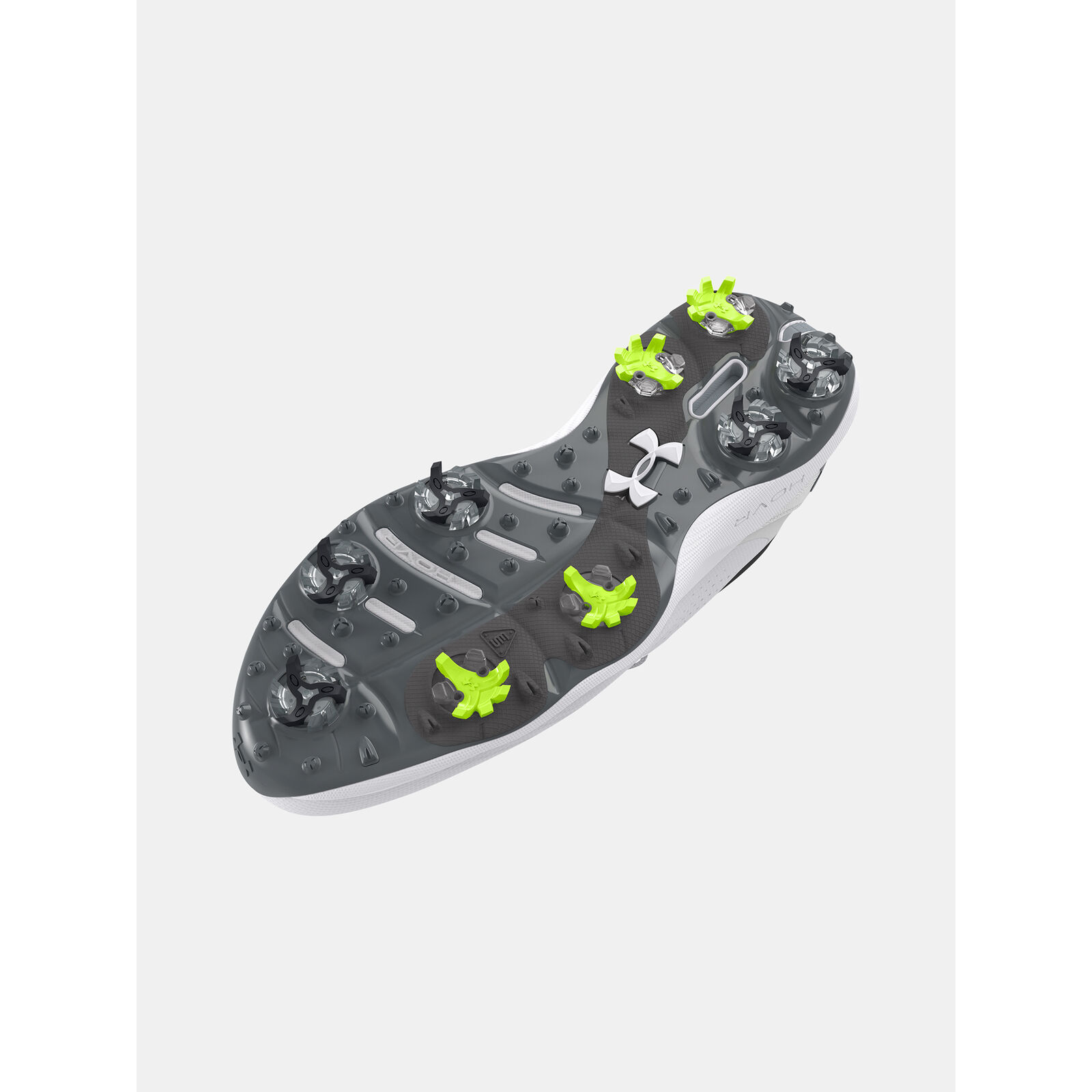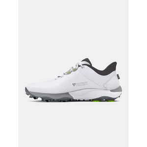 Az UA Swing Support System (S3) intelligensebb tapadást, kettõs habszivacs párnázást biztosít.A Swing Support Strap a felsõrész megerõsítésével kombinálva biomechanikailag helyes rögzítést biztosít.Az energiát visszaadó UA HOVR hab és a támogató Charged Cushioning párnázás irányítja a láb természetes mozgását a golf lendítése közben.Új UA S3 tüskék - a Softspikes-szal és egy golf biomechanikussal együttmködve tervezték - a játékot megváltoztató irányított tapadásért.A talp stratégiai hajlatokkal, másodlagos tapadással és TPU-val rendelkezik az oldalon a nagyobb ütés közbeni támogatásért.Továbbfejlesztett szabás nagyobb térrel a lábfej területén a jobb kényelem és stabilitás érdekében.Légáteresztõ, tartó felsõrész tervezett mikroszálas anyagból.Formázott talpbetét a jobb illeszkedés és kényelem érdekében.A méret a széles lábú sportolókhoz igazítva.Súly: 354g.